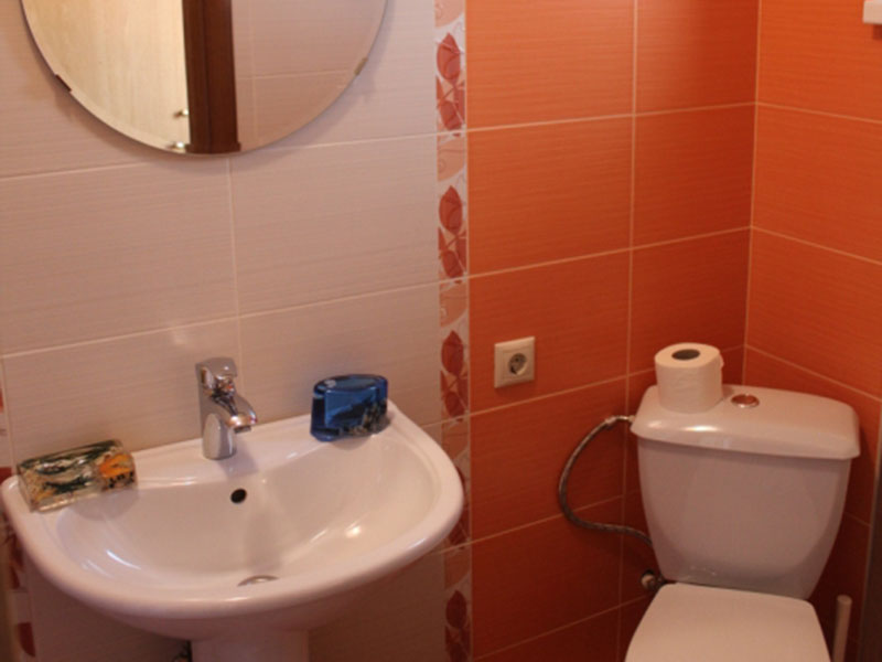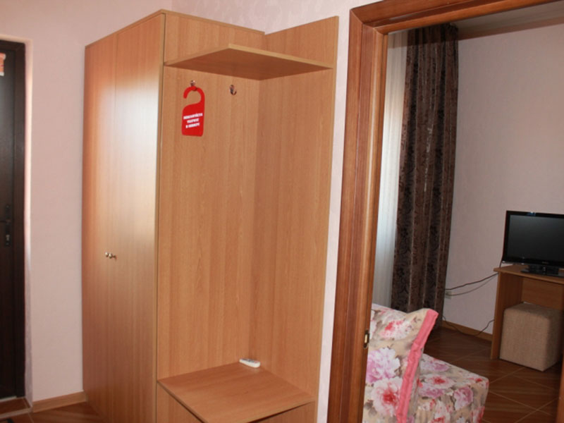 Номер вмещает 2 человек (возможно размещение 4 человека с доплатой 300 руб. с человека в сутки, дети до 3-х лет бесплатно). На балконе возле номера стоит столик со стульями для отдыха.